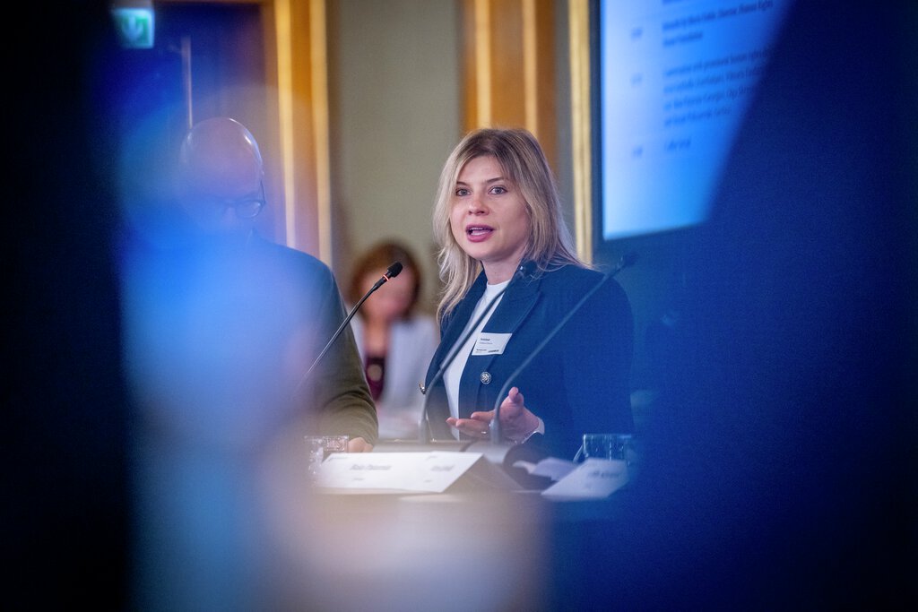 Samtale med fremtredende menneskerettighetsforkjempere, fra venstre Dusan Pokusevski (Serbia), Viktoria Fiodarava (Hviterussland), Baia Pataraia (Georgia), Arzu Geybulla (Aserbajdsjan), Olga Skrypnyk (Ukraina) og til høyre moderator Amund Trellevik.