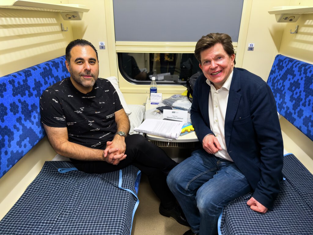 Stortingspresidenten på toget til Kyiv sammen med Riksdagens talmann Andreas Norlén.